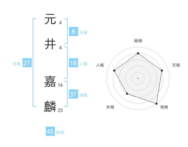 元井 嘉麟さんを姓名の画数から五運を鑑定