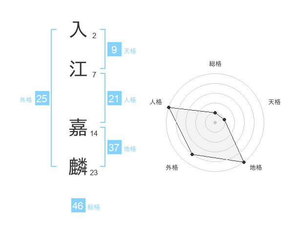 入江 嘉麟さんの総格は46画の1点!