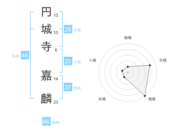 円城寺 嘉麟さんの総格は66画の1点!