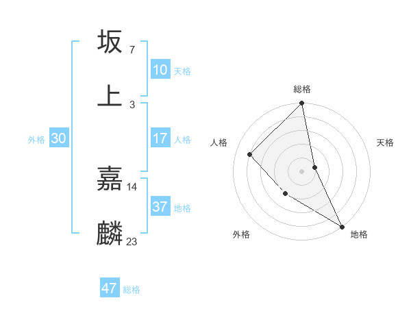 坂上 嘉麟さんの総格は47画の5点!