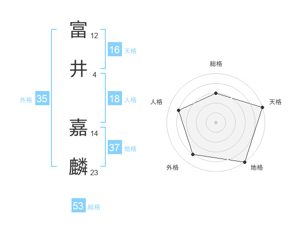 富井 嘉麟さんを姓名の画数から五運を鑑定