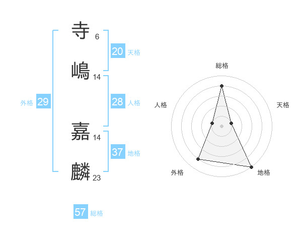 寺嶋 嘉麟さんの総格は57画の4点!