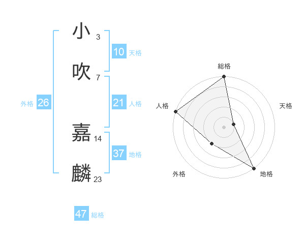 小吹 嘉麟さんの総格は47画の5点!