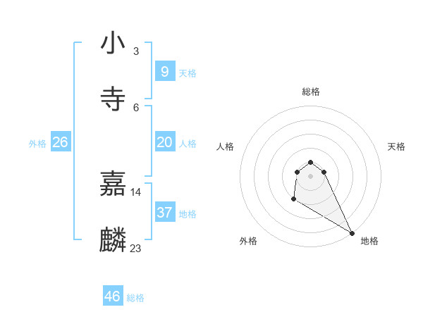 小寺 嘉麟さんの総格は46画の1点