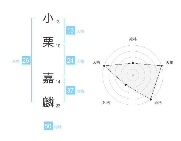 小栗 嘉麟さんを姓名の画数から五運を鑑定