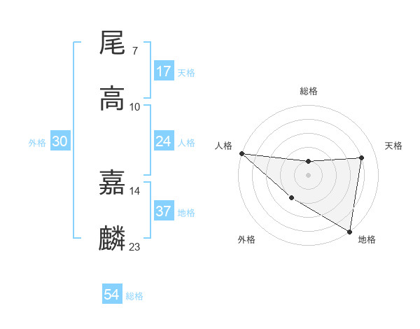 尾高 嘉麟さんの天格は17画の4点!