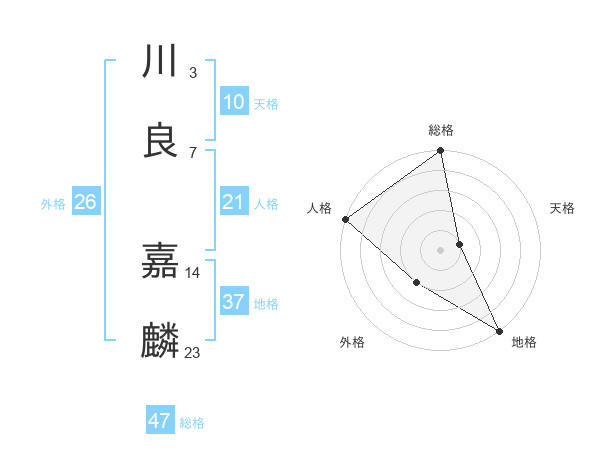 川良 嘉麟さんを姓名の画数から五運を鑑定