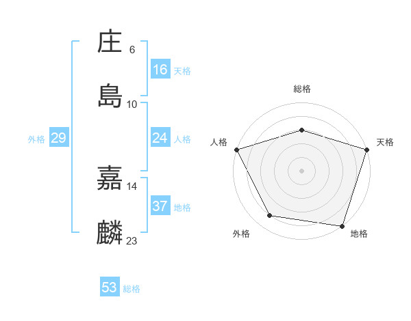 庄島 嘉麟さんを姓名の画数から五運を鑑定