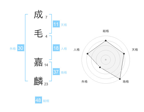 成毛 嘉麟さんを姓名の画数から五運を鑑定