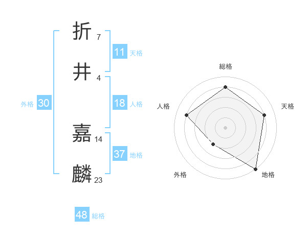 折井 嘉麟さんの総格は48画の4点!