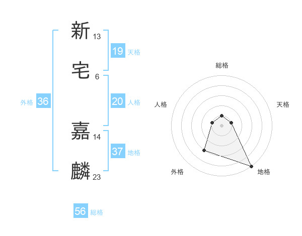 新宅 嘉麟さんを姓名の画数から五運を鑑定