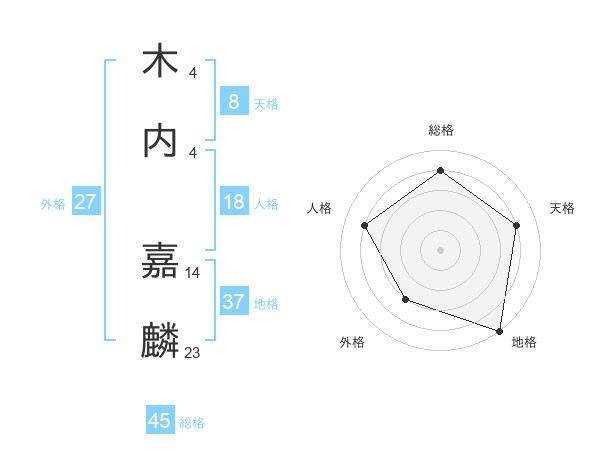 木内 嘉麟さんの総格は45画の4点!