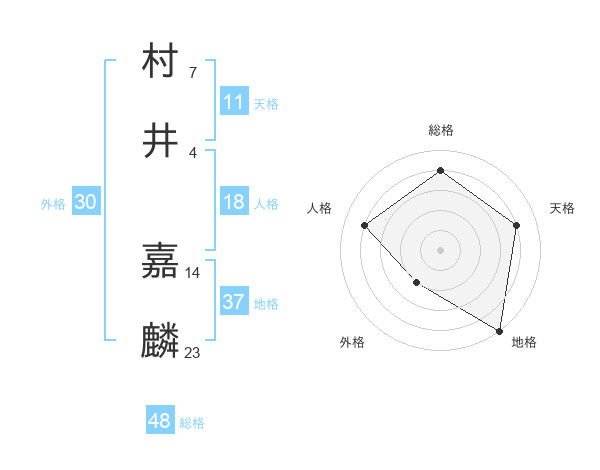 村井 嘉麟さんを姓名の画数から五運を鑑定