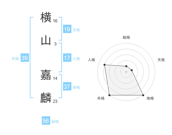 横山 嘉麟さんの外格は39画の5点!