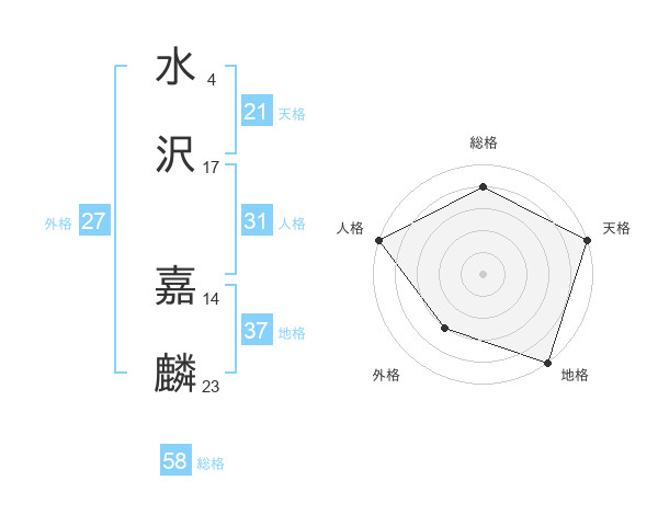 水沢 嘉麟さんの総格は58画の4点!