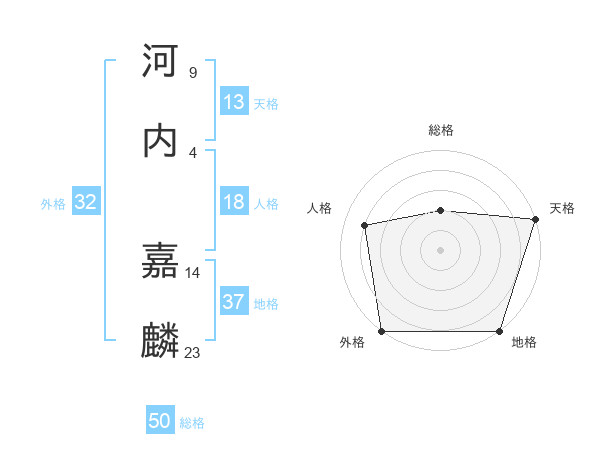 河内 嘉麟さんの総格は50画の2点!