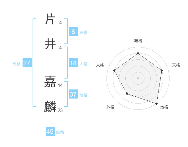 片井 嘉麟さんを姓名の画数から五運を鑑定