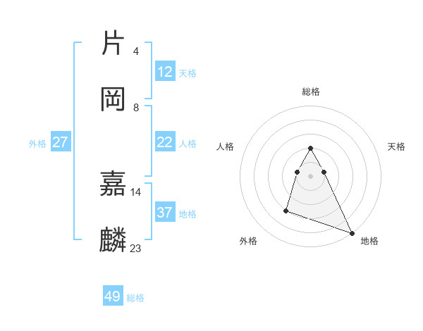 片岡 嘉麟さんを姓名の画数から五運を鑑定