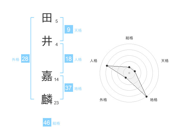 田井 嘉麟さんを姓名の画数から五運を鑑定