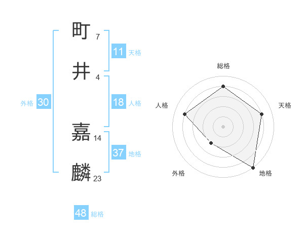 町井 嘉麟さんを姓名の画数から五運を鑑定