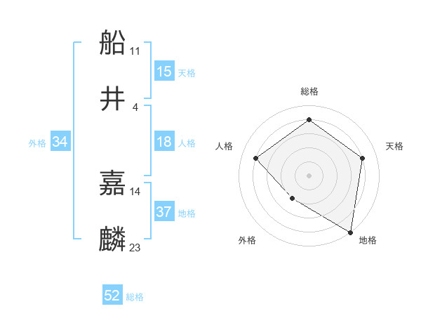 船井 嘉麟さんの総格は52画の4点!