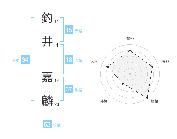 釣井 嘉麟さんの総格は52画の4点!