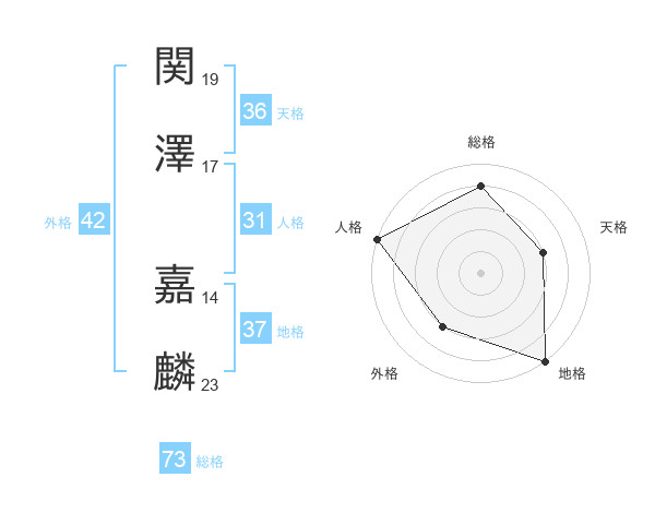 関澤 嘉麟さんを姓名の画数から五運を鑑定