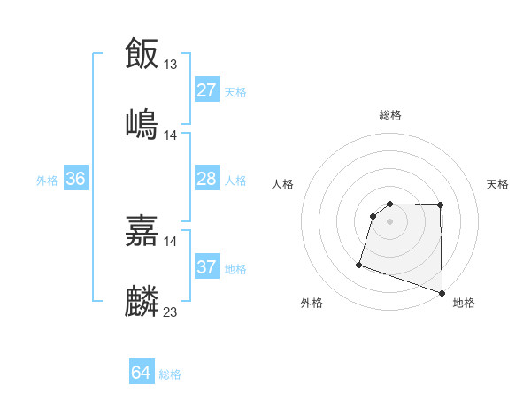 飯嶋 嘉麟さんの総格は64画の1点!