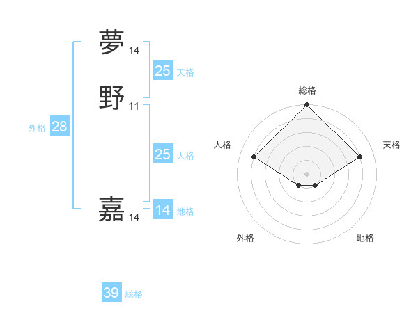 夢野 嘉さんを姓名の画数から五運を鑑定