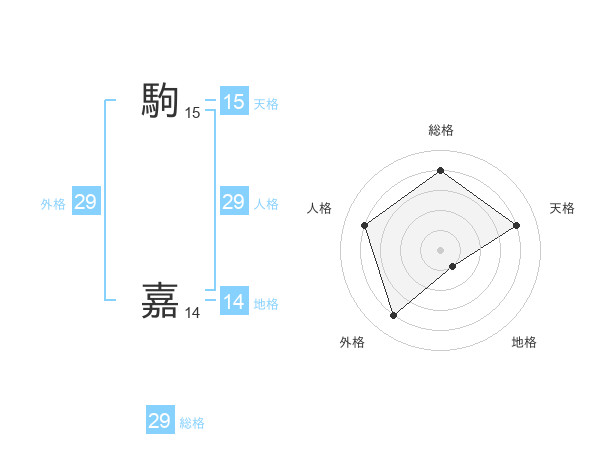 駒 嘉さんの総格は29画の4点