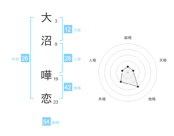 大沼 嘩恋さんを姓名の画数から五運を鑑定