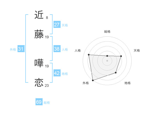 近藤 嘩恋さんを姓名の画数から五運を鑑定
