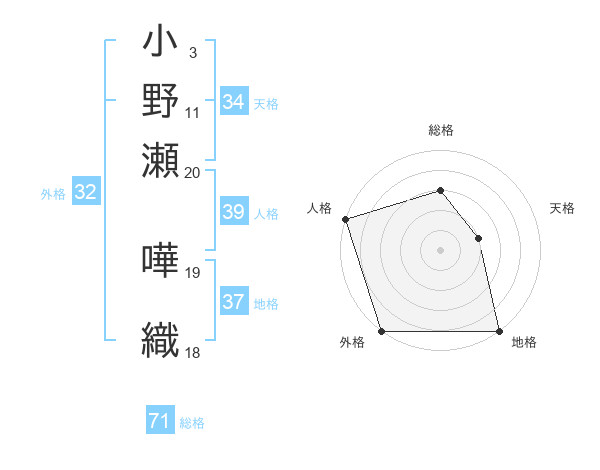 小野瀬 嘩織さんを姓名の画数から五運を鑑定