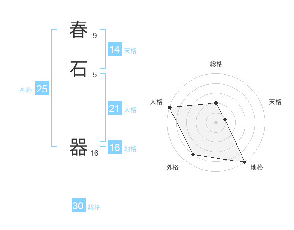 春石 器さんの総格は30画の2点!