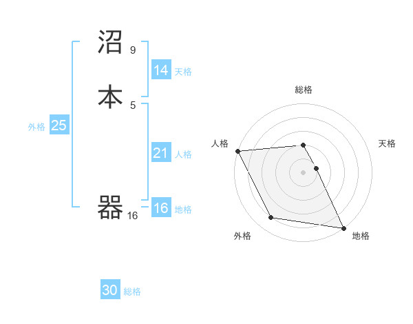 沼本 器さんの人格は21画の5点!