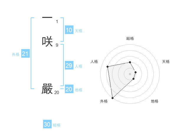 一咲 嚴さんの地格は20画の1点!