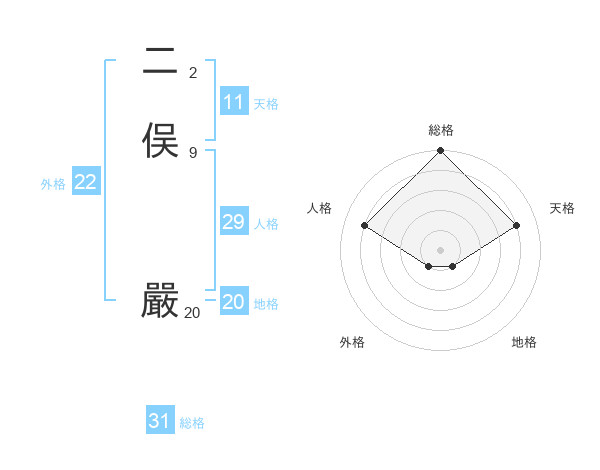 二俣 嚴さんの総格は31画の5点!
