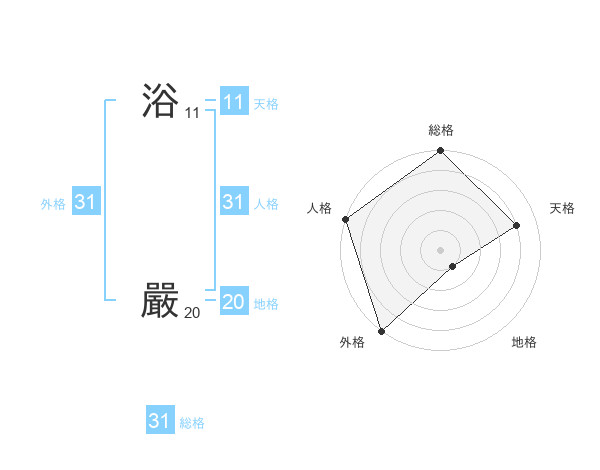 浴 嚴さんの外格は31画の5点!