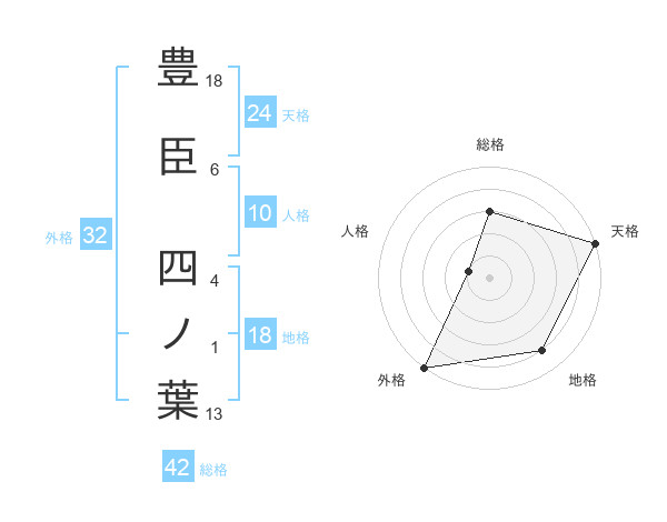豊臣 四ノ葉さんを姓名の画数から五運を鑑定
