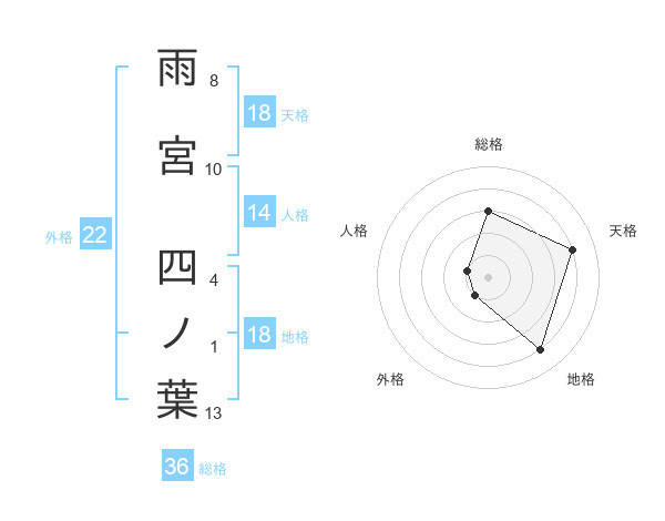 雨宮 四ノ葉さんを姓名の画数から五運を鑑定