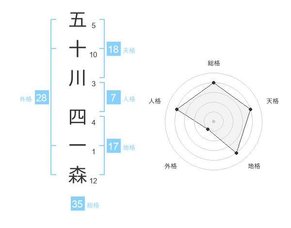 五十川 四一森さんの総格は35画の4点!