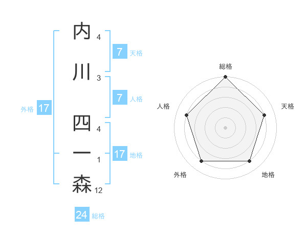 内川 四一森さんの総格は24画の5点!