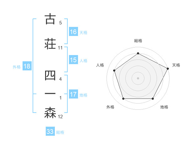 古荘 四一森さんを姓名の画数から五運を鑑定