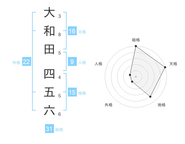 大和田 四五六さんを姓名の画数から五運を鑑定