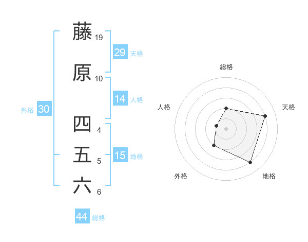 藤原 四五六さんを姓名の画数から五運を鑑定