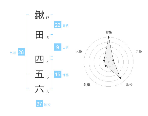 鍬田 四五六さんの総格は37画の5点!