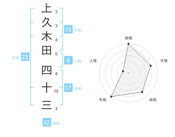 上久木田 四十三さんを姓名の画数から五運を鑑定