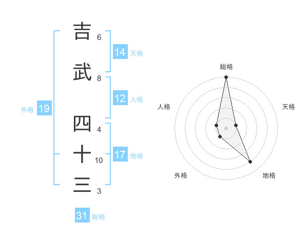 吉武 四十三さんの総格は31画の5点!