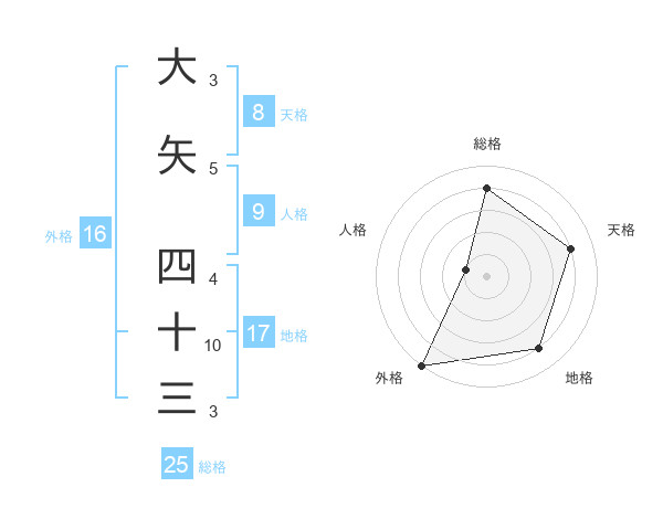 大矢 四十三さんを姓名の画数から五運を鑑定