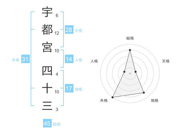 宇都宮 四十三さんを姓名の画数から五運を鑑定